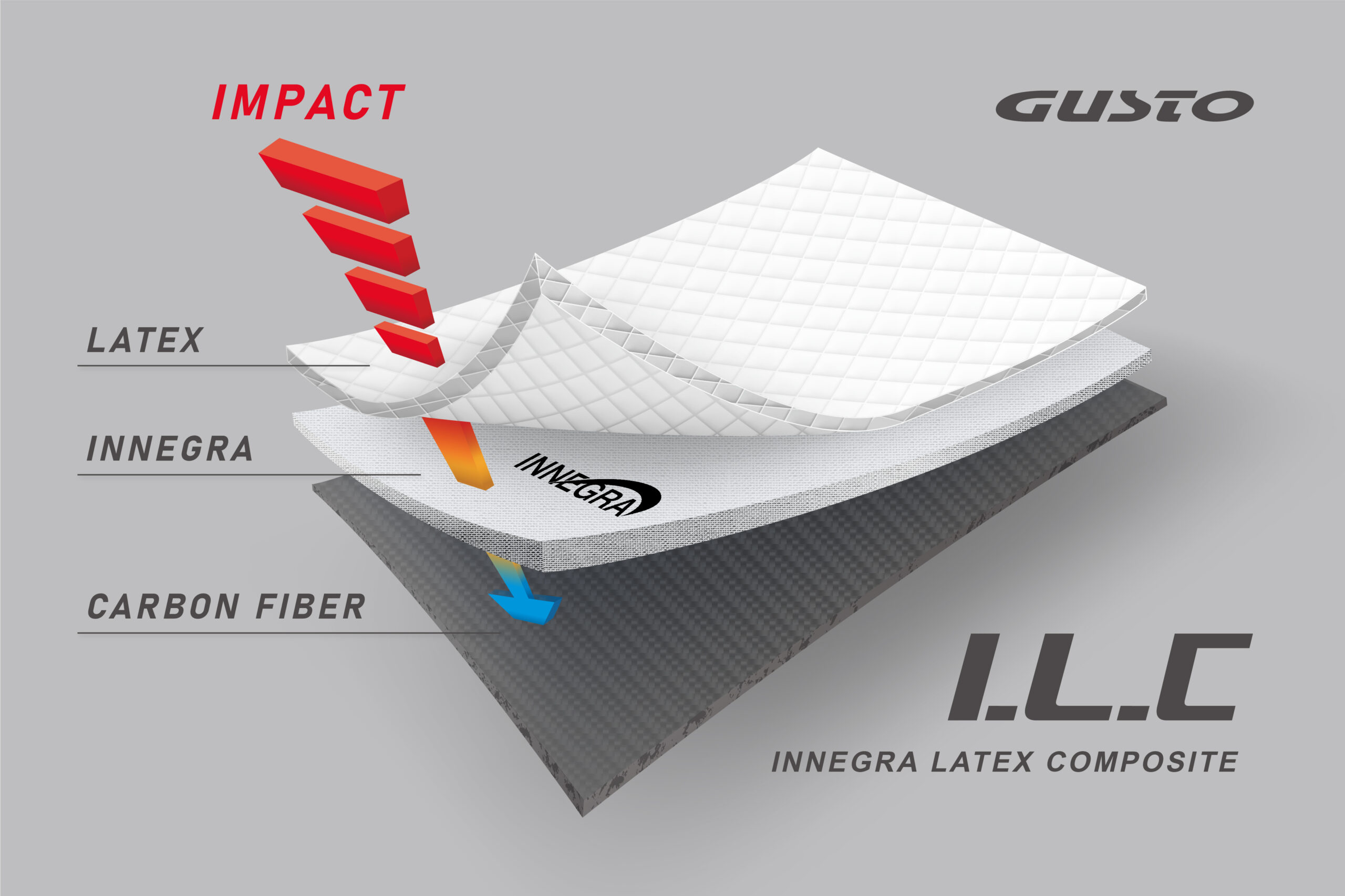 I.L.C. (Innegra Latex Composite) originated from U.S made advanced material, the lightest high-performance carbon fibre, combined with the patented LATEX material, it delivers excellent shock absorption performance. Incorporated with high-rigidity carbon fibre material from Japan, GUSTO’s R&D team have exclusively developed the patented carbon composite technology which significantly increases the frame’s rigidity and the stability of shock absorption. As a result, this reduces pain risk of injuries caused by long-distance riding vibrations.